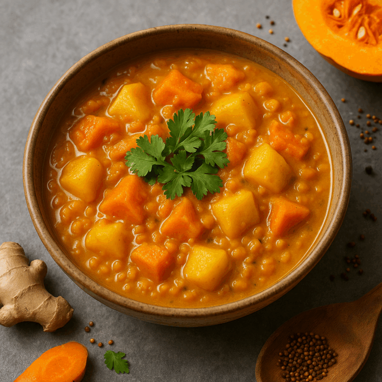 Dieser deftige Grünkohl-Kartoffel-Eintopf verkörpert pure Herbstgemütlichkeit aus dem Norden. Würziger Räuchertofu ersetzt die traditionelle Pinkelwurst und bringt zusammen mit zart schmelzenden Kartoffeln und Karotten kräftigen Biss in die Schale. Vollgepackt mit Eisen, Protein und Ballaststoffen nährt dieses Gericht die Muskeln…
