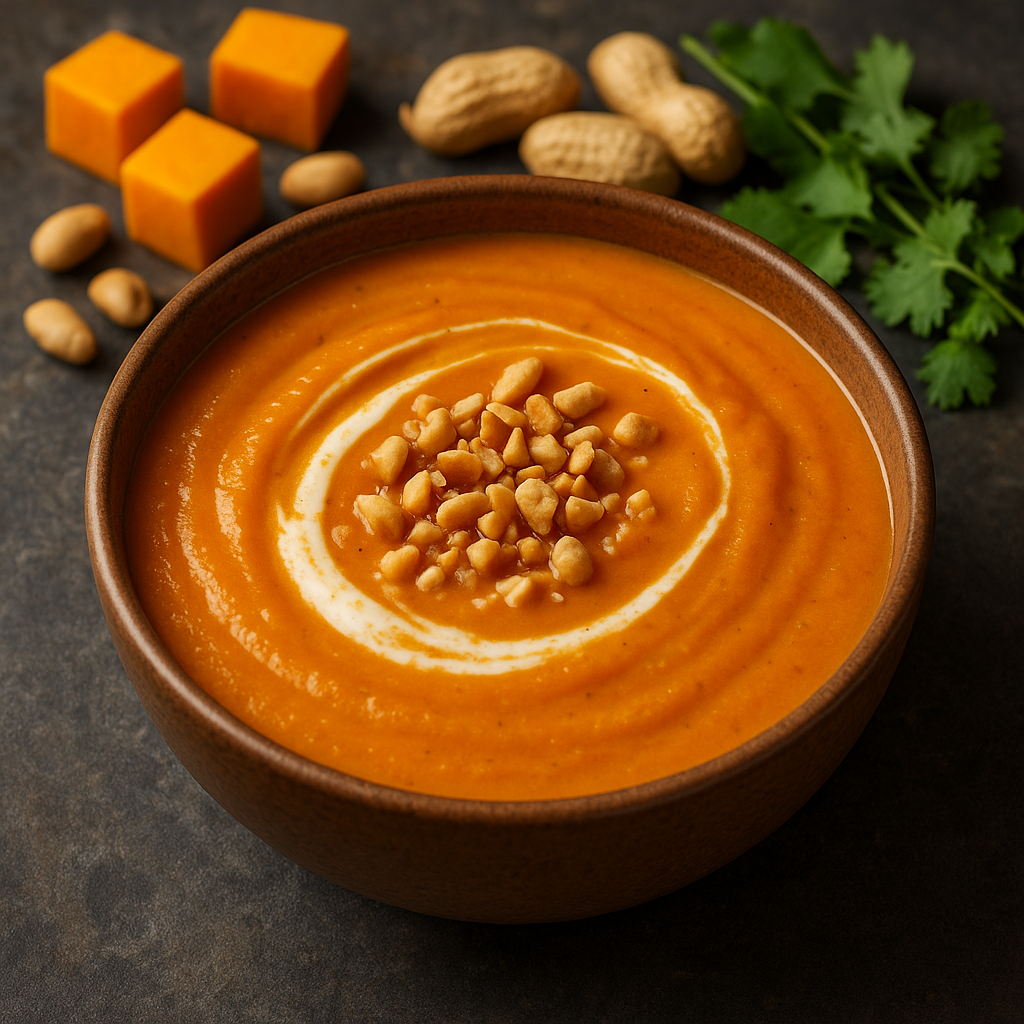 Samtige Kürbis-Kartoffel-Erdnuss-Suppe