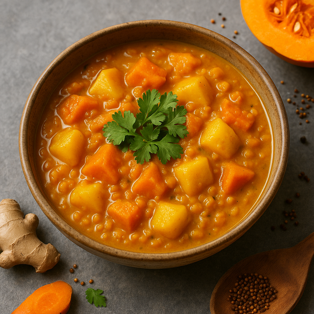 Würziges Kürbis-Kartoffel-Curry mit roten Linsen